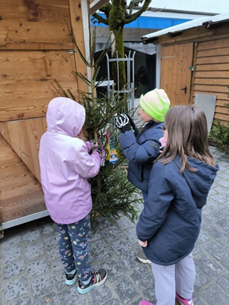 Selbstverständlich haben die Schülerinnen und Schüler ihre Anhänger auch persönlich am Weihnachtsmarkt vorbeigebracht und die Bäume damit festlich geschmückt.