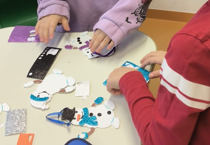 Klassenübergreifend wurden viele verschiedene Anhänger für die Bäumchen gebastelt. Vom Tannenbaum über Schneemänner bis hin zu Engeln oder Schneebären, da war viel Buntes und Glitzerndes dabei.